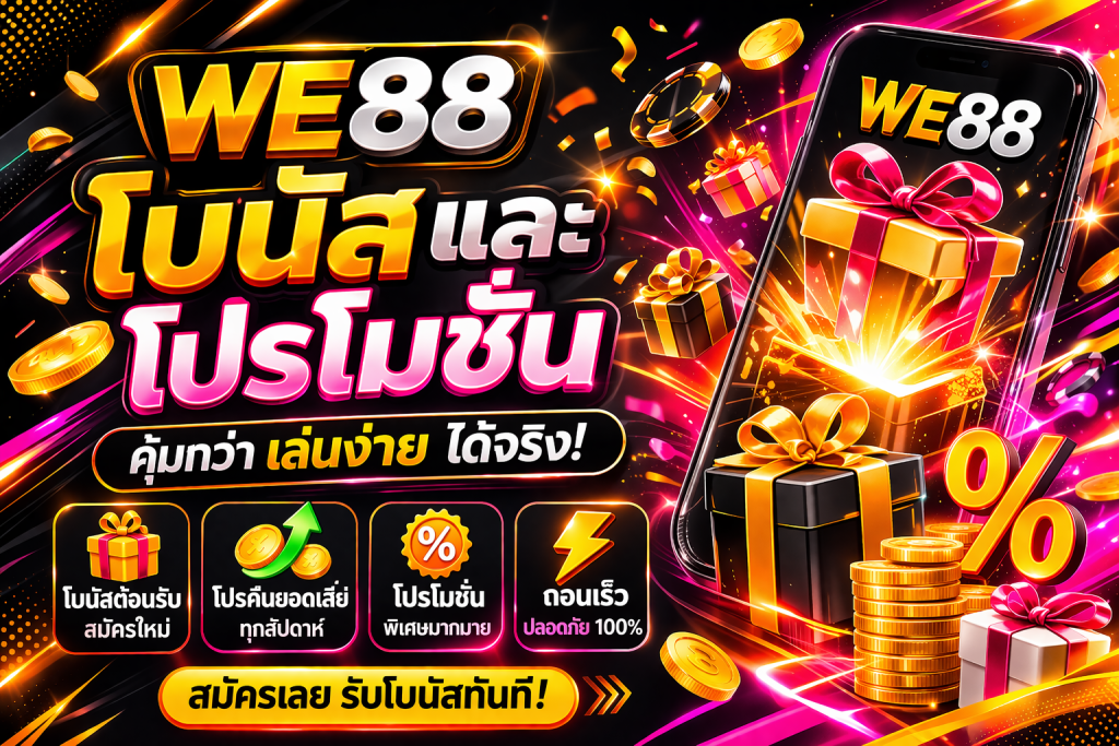 WE88 มีโปรโมชั่นและโบนัสสำหรับสมาชิกใหม่และเก่า ทั้งเครดิตฟรี โบนัสฝากเงิน และรางวัลพิเศษ ทำให้ผู้เล่นมีโอกาสเพิ่มเงินทุนและสนุกกับเกมได้มากขึ้น การรับโปรโมชั่นยังง่าย เพียงทำตามเงื่อนไขที่เว็บไซต์กำหนดก็สามารถรับโบนัสทันที